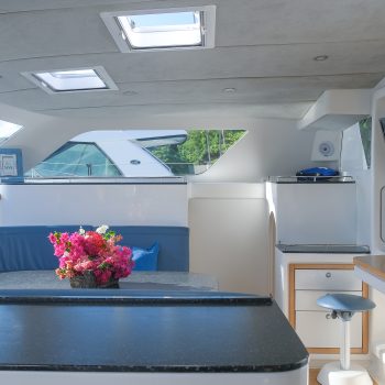 Step into a lovely open plan, air-conditioned salon, relax at the bar or cook up a storm in the well-equipped gourmet galley.
