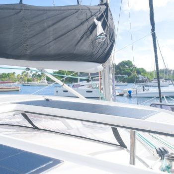 The VOYAGE 480 is a fantastic sailing yacht designed for stability, space, and performance. Her beamy hulls offer luxury, air-conditioned, queen-size berths aft and king-size berths forward. This stylish boat is an excellent choice for ease of handling and manoeuvring so you can enjoy the sailing and fun with your whole group. Here are her key values:
