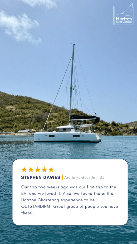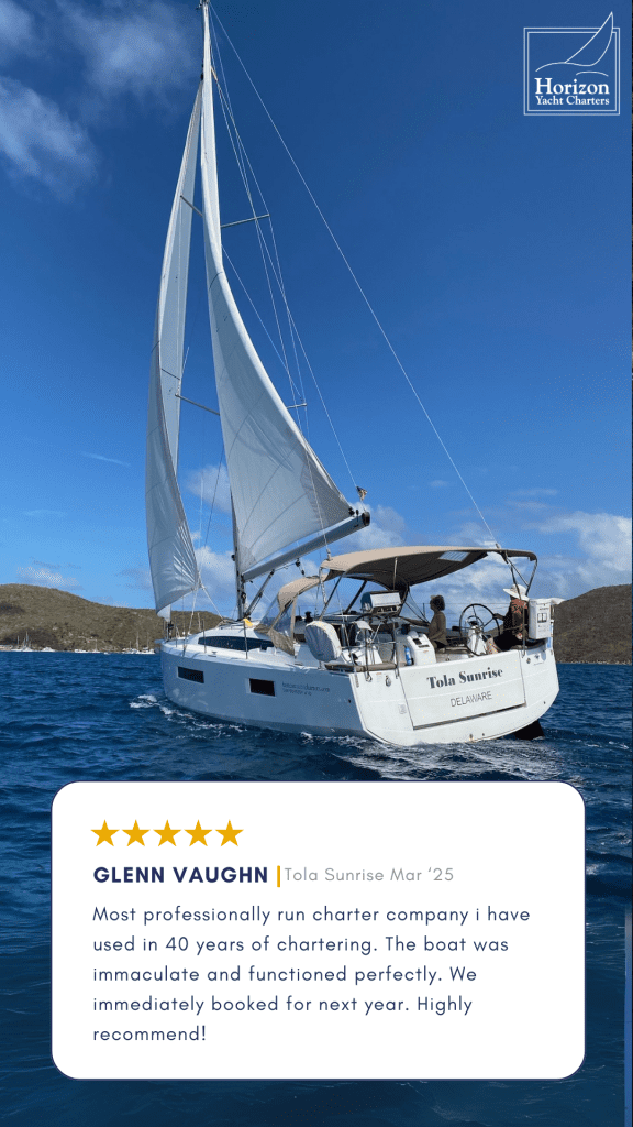 At Horizon, we aim to provide the best possible service available when you charter in the BVI, ensuring you are satisfied with our service. The latest Horizon Yacht Charters BVI reviews reflect this in spades. Many larger charter companies cannot match the level of customer service and personal attention that you will receive from us at Horizon Yacht Charters. Meticulously maintained yachts, one-on-one boat and chart briefings by our friendly and knowledgeable staff ensure a great sailing vacation and good value for money too.